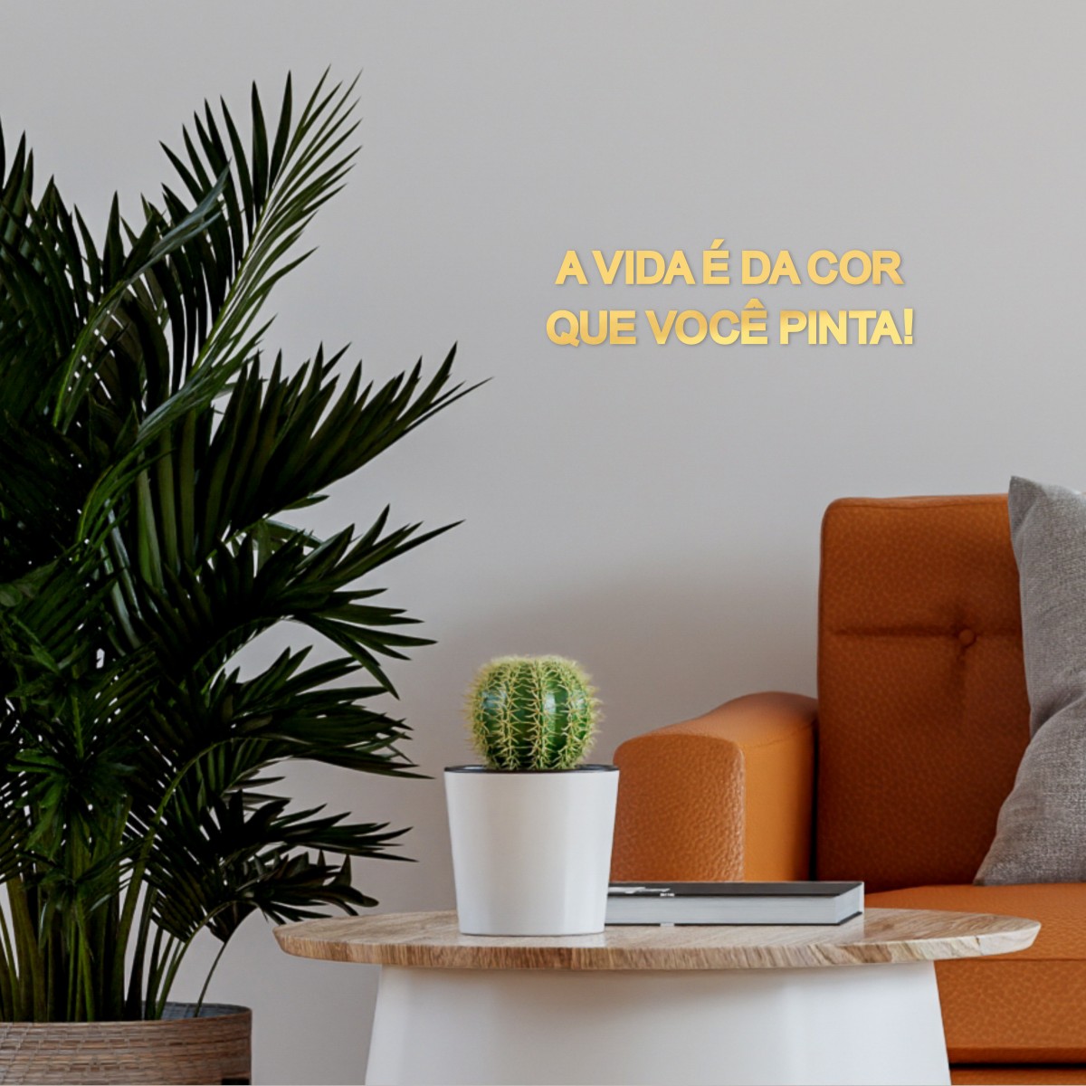 Espelho Decorativo "A vida é da cor que você pinta!" F1 - Acrílico Dourado