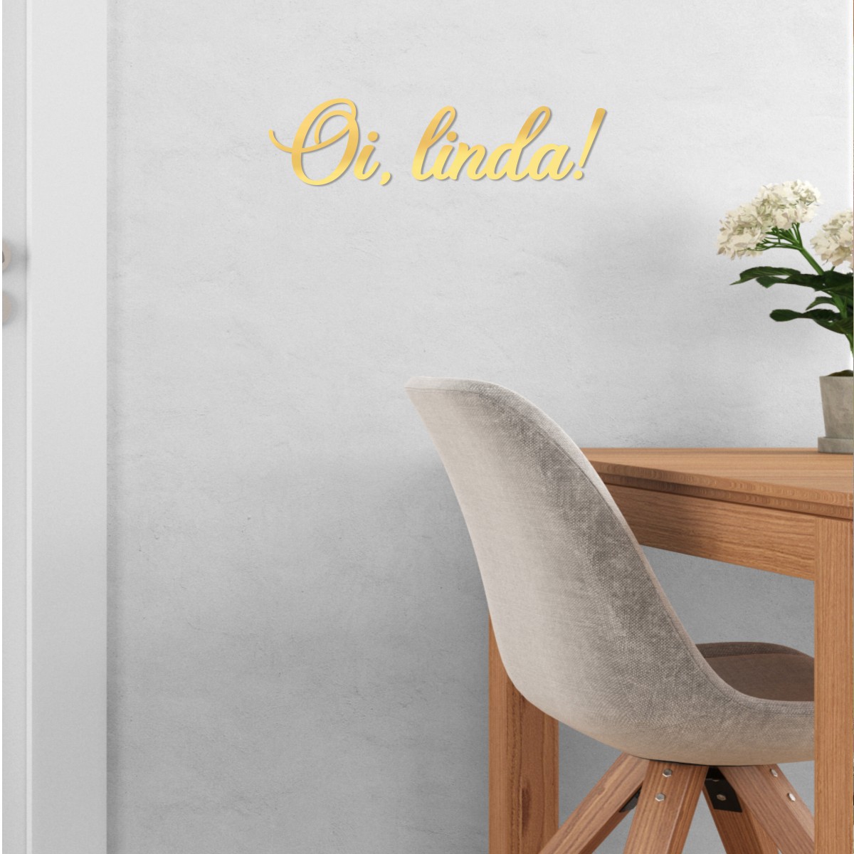 Frase Espelhada "Oi, Linda!" - Acrílico Espelhado Dourado