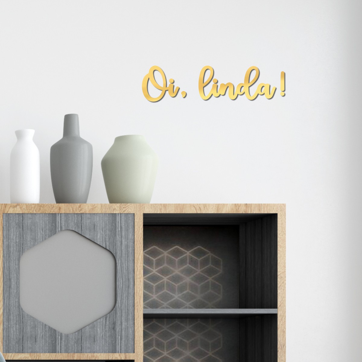 Espelho Decorativo "Oi, linda!" - Acrílico Espelhado Dourado