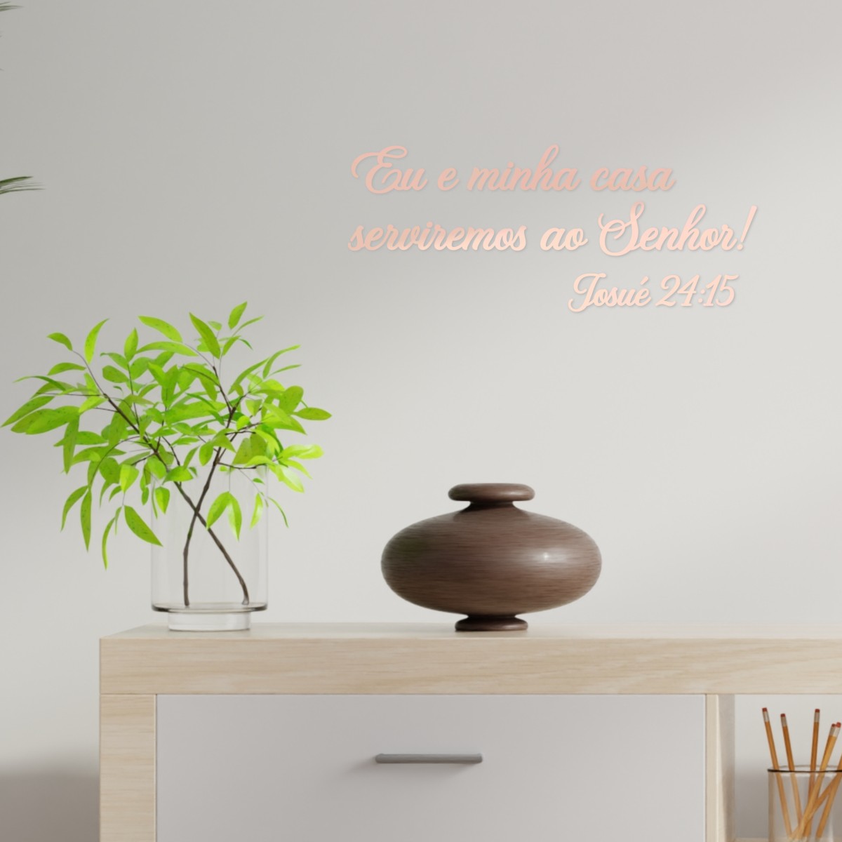 Espelho Decorativo "Eu e minha casa serviremos ao Senhor! Josué 24:15" - Acrílico Rosa