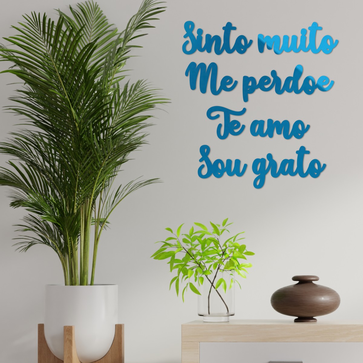 Espelho Hoponopono Sinto Muito Me Perdoe Te Amo Sou Grato - Acrílico Espelhado Azul