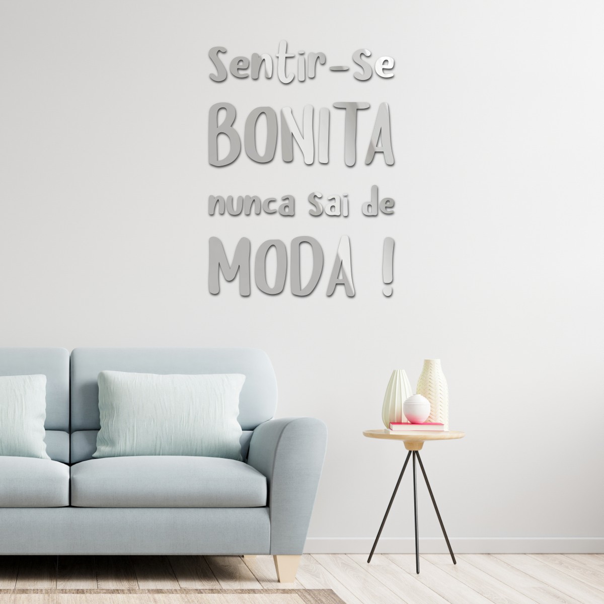 Espelho "Sentir-se Bonita Nunca Sai de Moda!" - Acrílico Prata