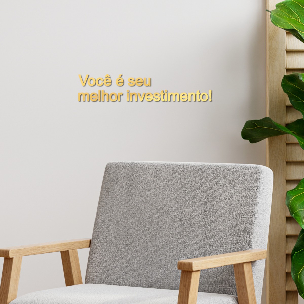 Espelho Decorativo "Você é o seu melhor investimento!" - Acrílico Espelhado Dourado