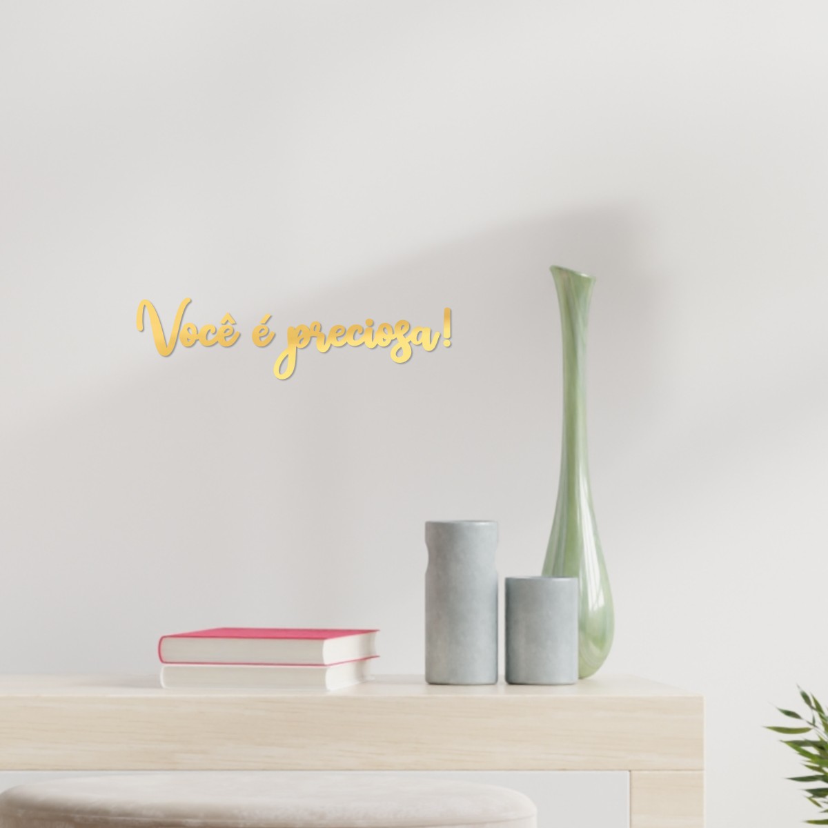 Espelho Decorativo "Você é preciosa!" F4 - Acrílico Espelhado Dourado
