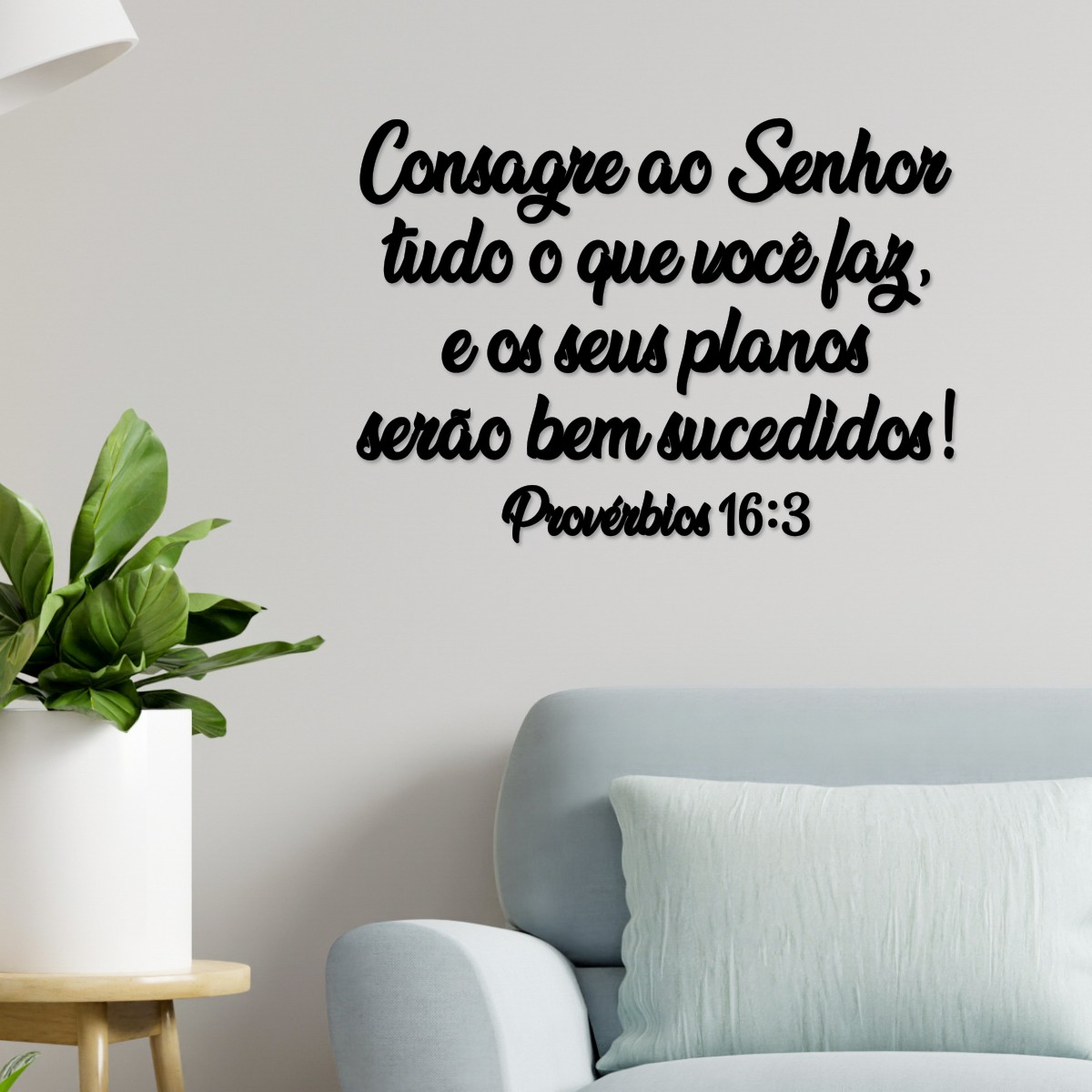 Placa "Consagre ao senhor tudo o que você faz e os seus planos serão bem sucedidos! Provérbios 16" - Preto